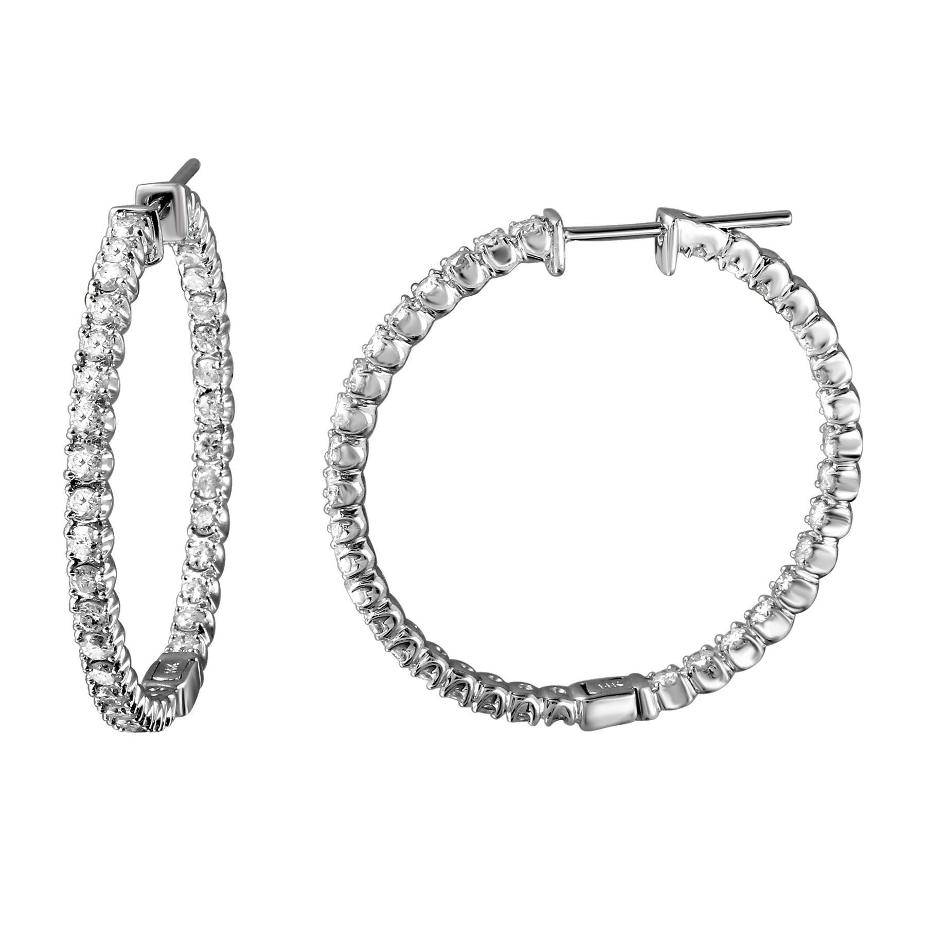 REF-200T2X - SKU: JF409688 ---- 1.89 CTW White Round Diamond Hoop Earring 14K White Gold