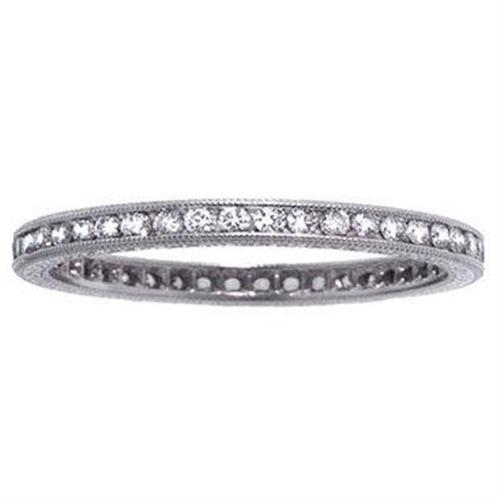 Exquisite Channel set Platinum Diamond Wedding Band. This elegant band consists of approximately 0.50ct of high quality Diamonds of H Color, VS1 Clarity. Both sides of the band are engraved with Scroll Motif. E23 1.8mm wide. Small surcharge for sizes over 7.5. 10% restocking fee for returns of sizes under 5 and over 7.