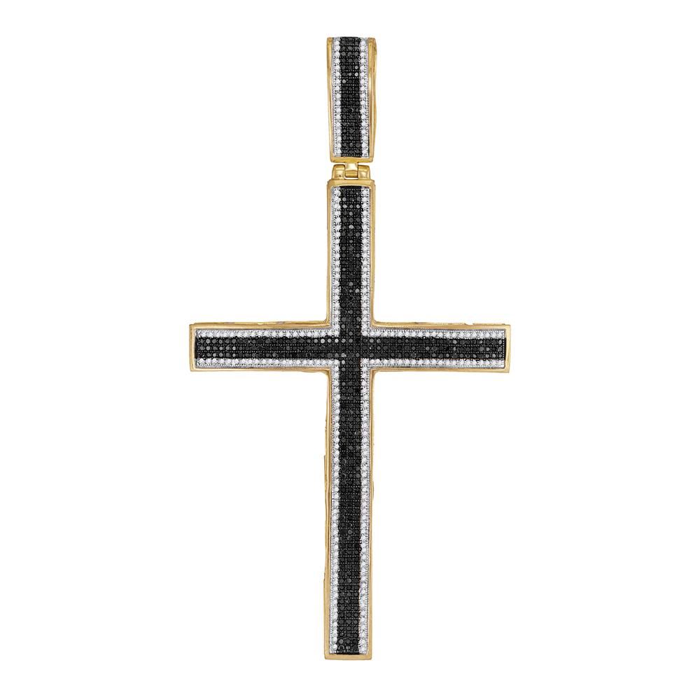 REF-119W9K- SKU: GD59848 ---- 1.9 CTW Mens Black Color Diamond Roman Cross Charm Pendant 10KT Yellow Gold