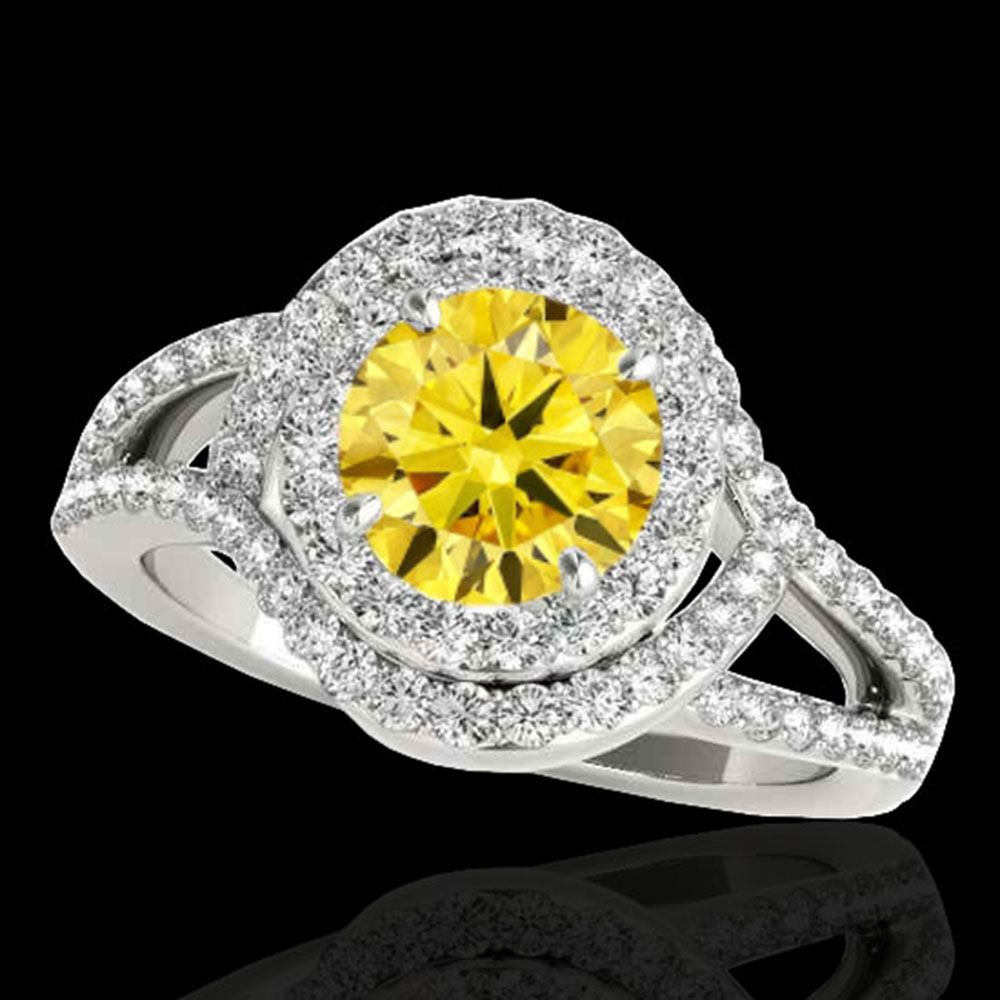 REF-218F2M - SKU: 34394 ---- 1.9 ctw Certified SI/I Fancy Intense Yellow Diamond Ring 10k White Gold