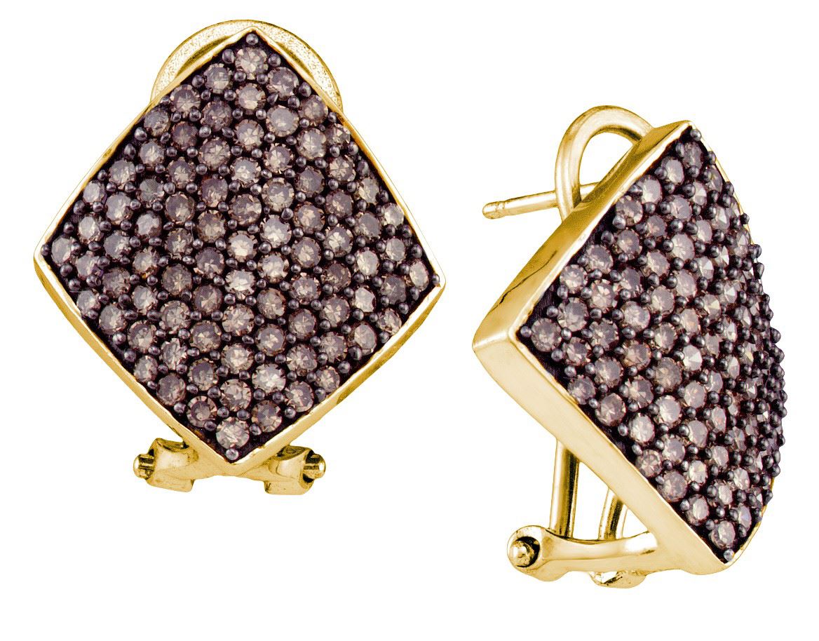 REF-89A9N ---- 1.90 CTW Cognac-brown Colored Diamond Square Cluster Earrings 10K Yellow Gold - SKU: GD72991