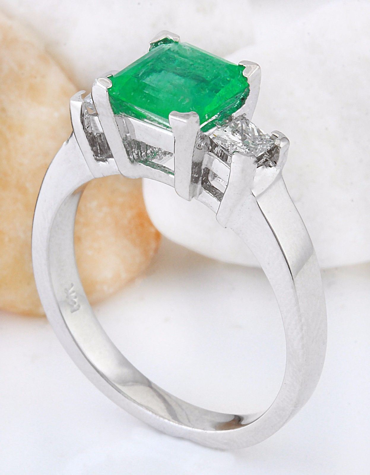 1.90 CTW Natural Emerald 18K Solid White Gold Diamond Ring