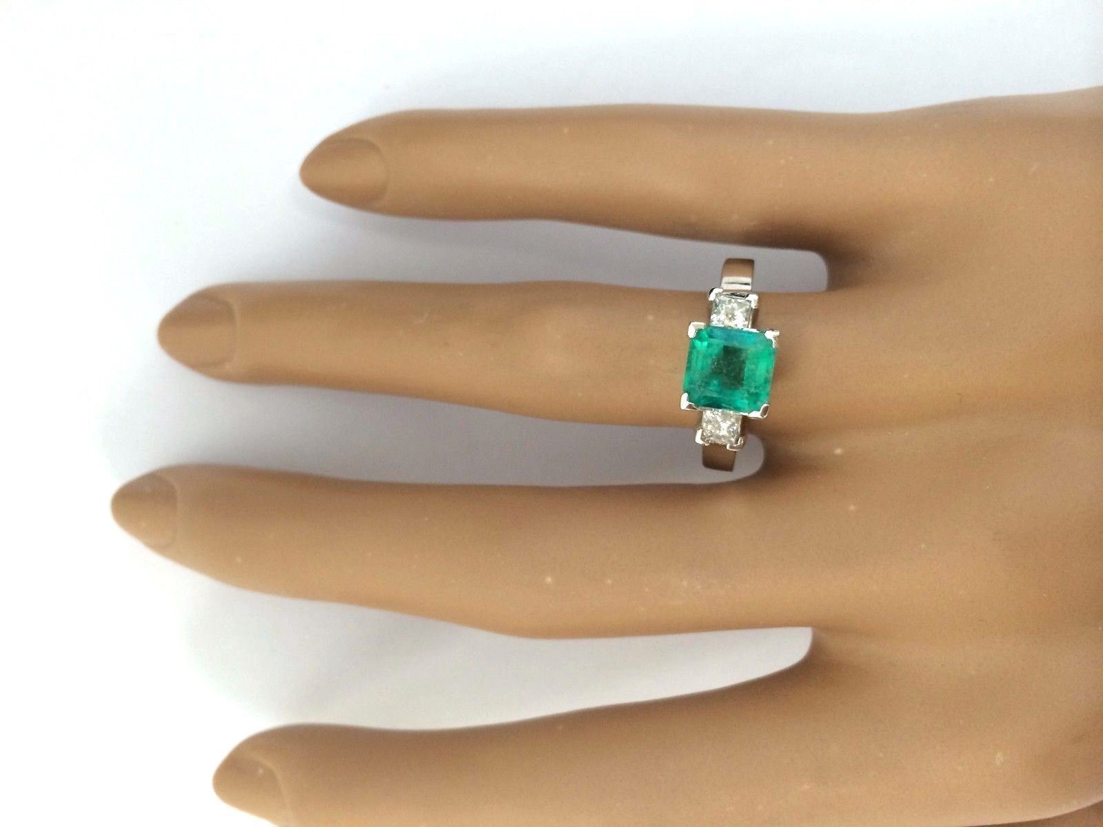 1.90 Carat Natural Emerald 18K Solid White Gold Diamond Ring