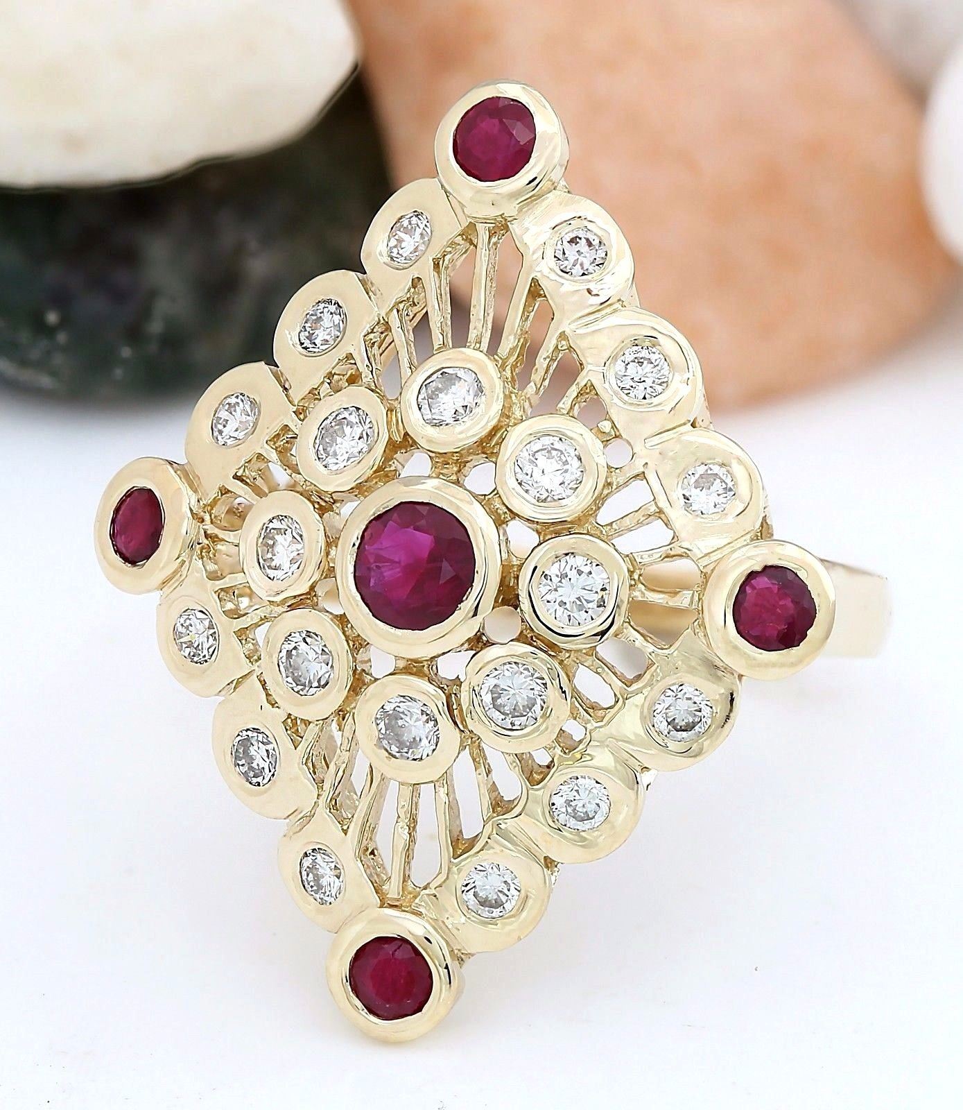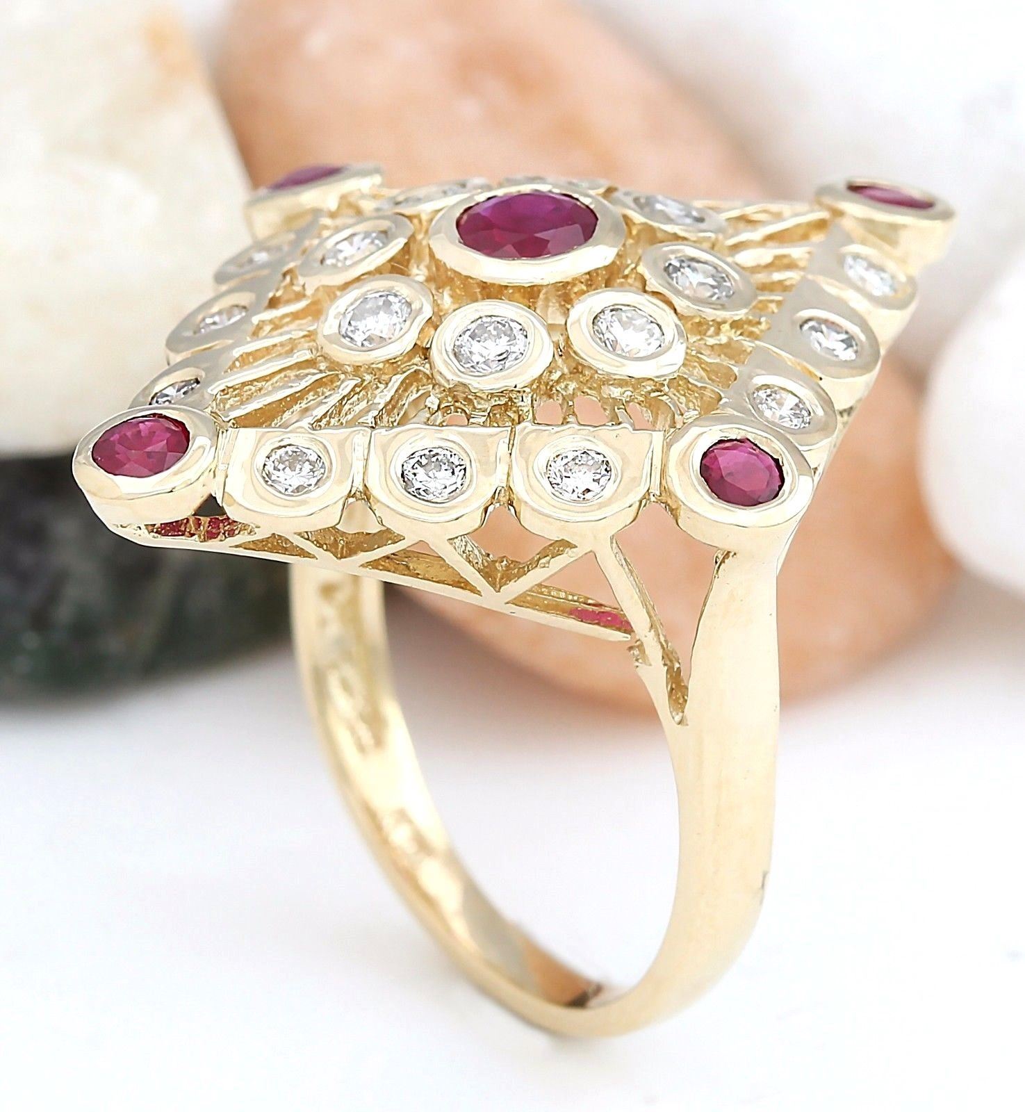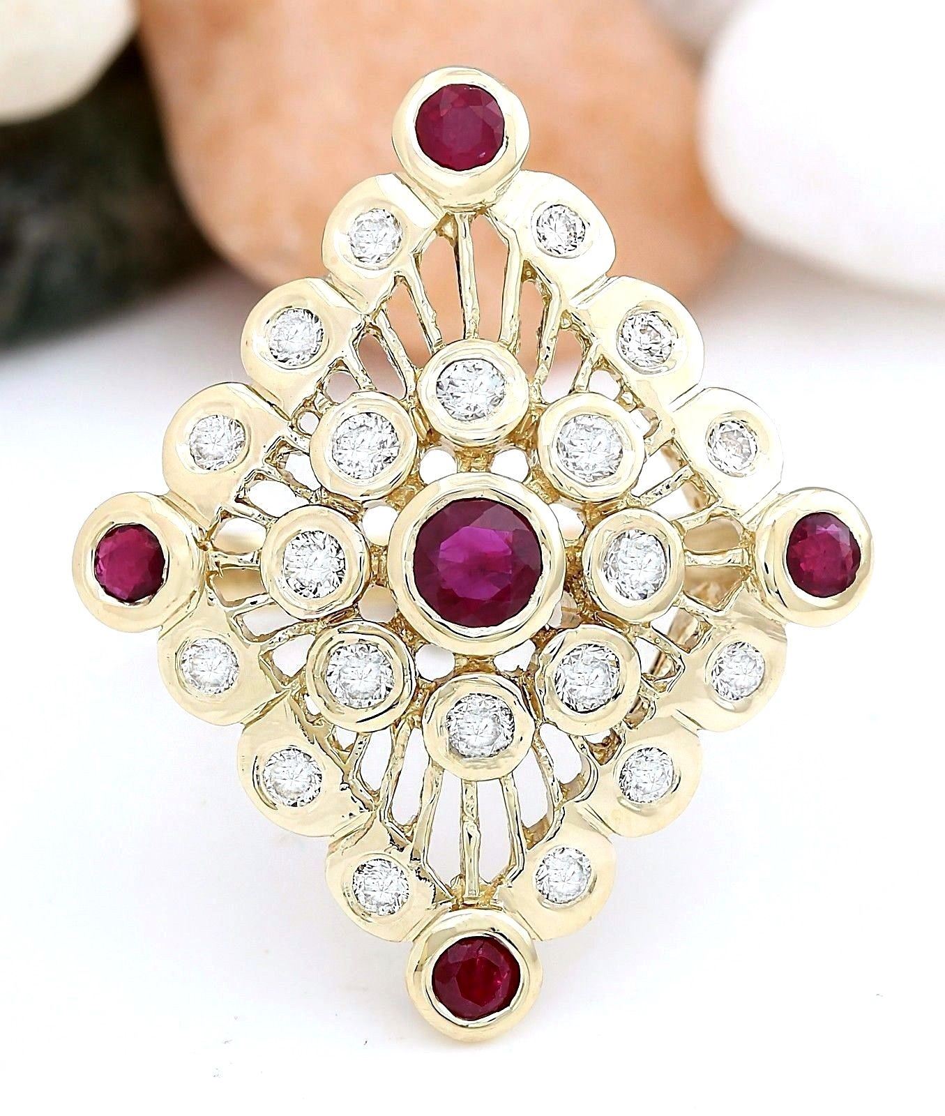 1.90 Carat Natural Ruby 14K Solid Yellow Gold Diamond Ring