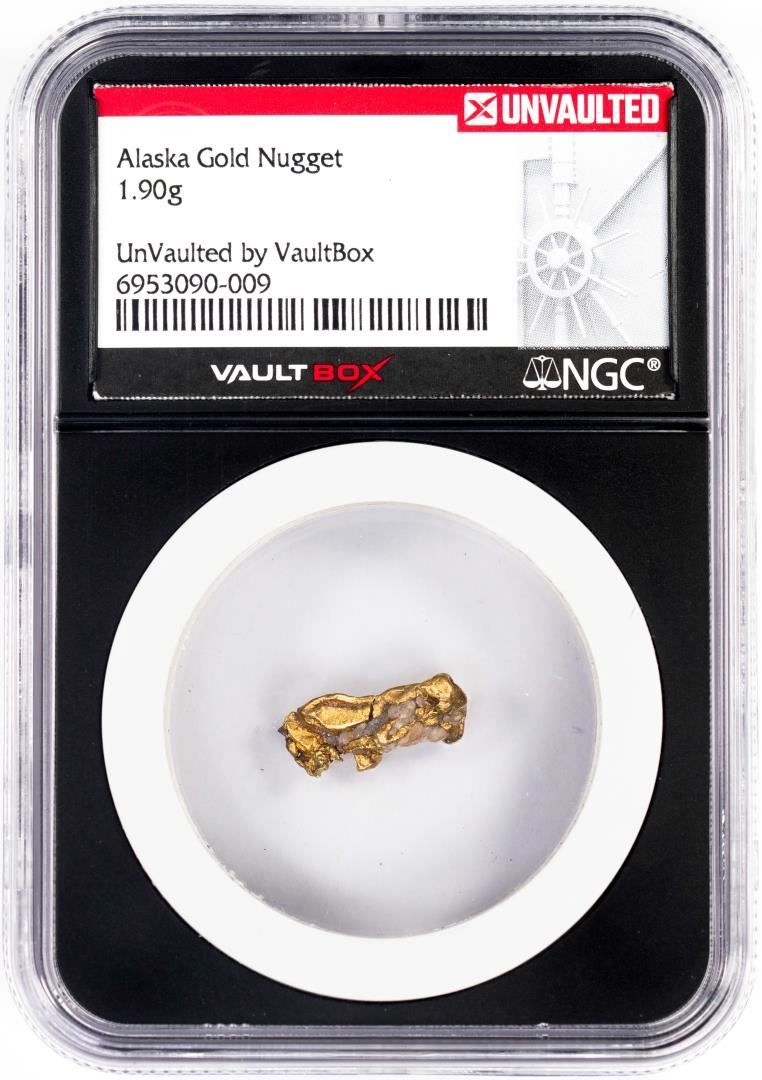 One 1.90 Gram Alaska Gold Nugget NGC Vaultbox Unvaulted. NGC Certified.