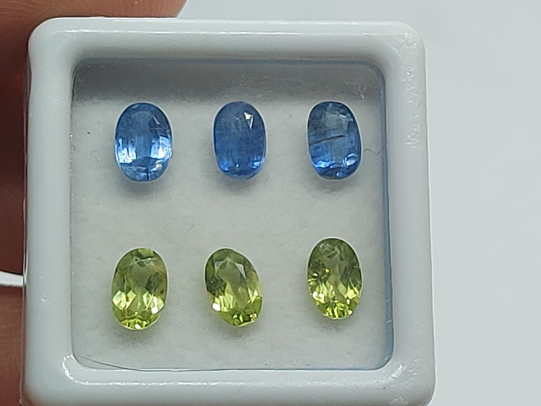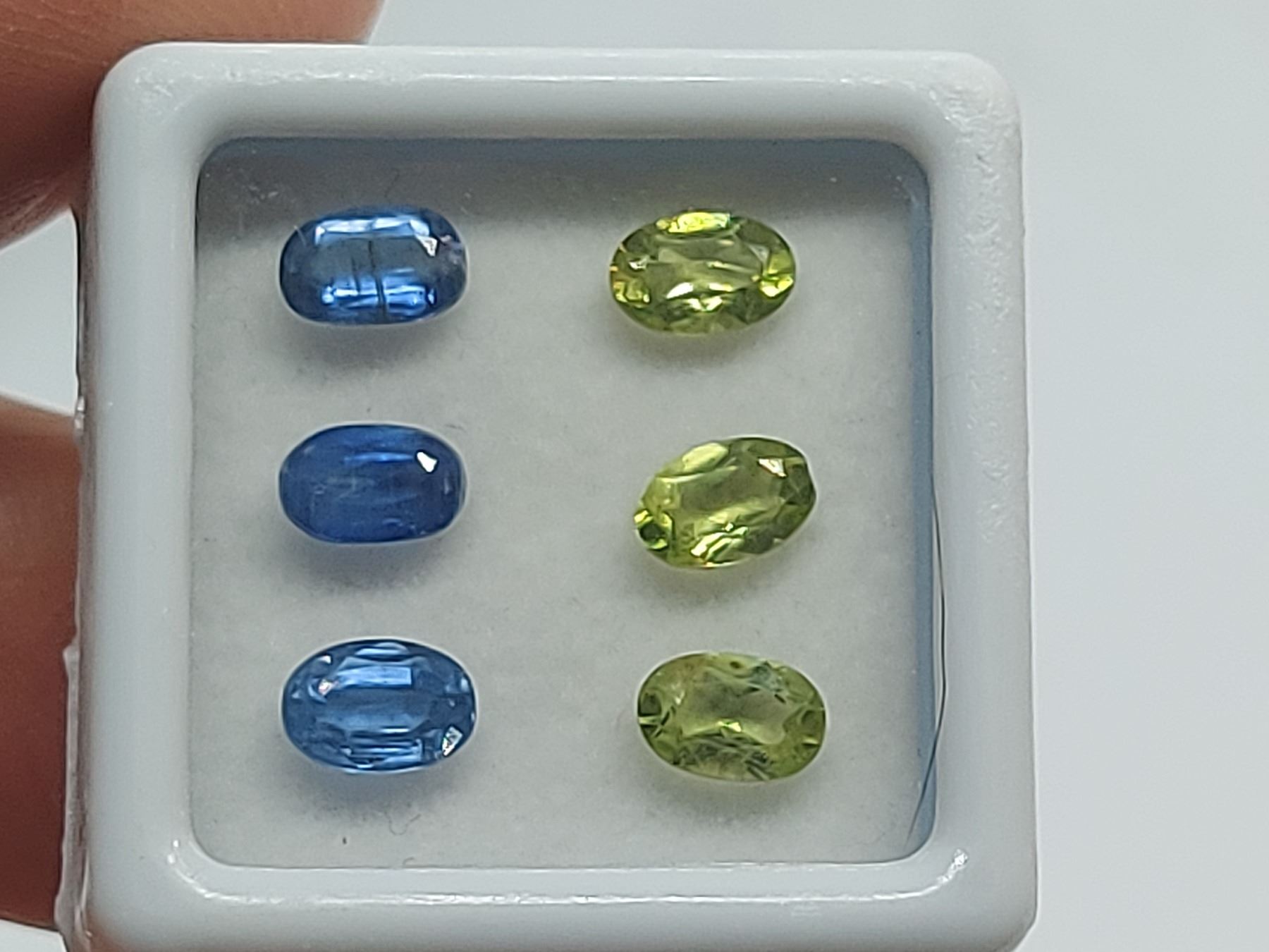 1.90 ct. KYANITE 6 x 4 mm Colour: BLUE, Shape: Oval Cut, Clarity: VVS, Luster: Vitreous, Origin: Brazil Unheated and Untreated 1.50 ct. PERIDOT 6 x 4 mm Colour: VIVID GREEN, Shape: Oval Cut, Clarity: VVS, Luster: Vitreous, Origin: Brazil Unheated and Untreated