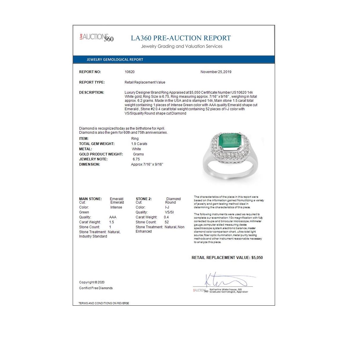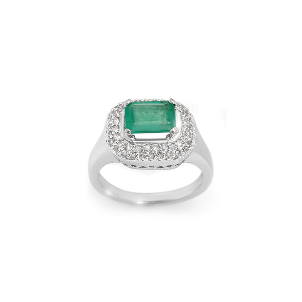 1.90 ctw Emerald & Diamond Ring 14K White Gold