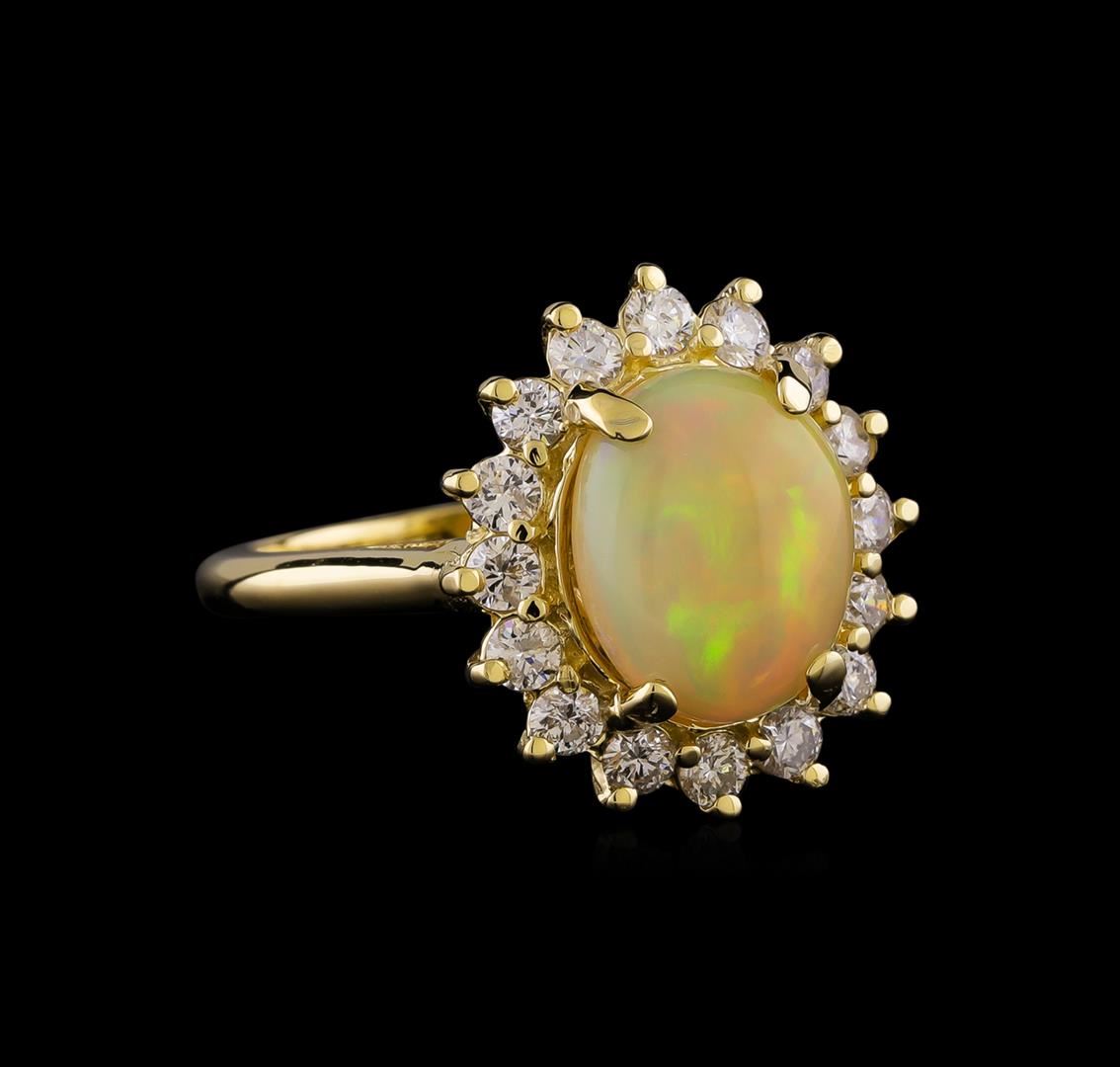 One ring : 14KT yellow gold weighing 5.37gm containing one opal center stone with a total weight of 1.90ct. and side diamonds weighing 0.75ctw.