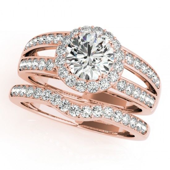 REF-421H6A -31233 ---- 1.91 CTW Certified VS/SI Diamond 2Pc Wedding Set Solitaire Halo 14K Rose Gold ---- Luxury Designer Brand 2 Pc Set Appraised at $20,850 Certificate Number US31233 14k Rose gold, 2 Pc Set Size is 7, 2 Pc Set measuring approx. Uniform, weighing in total approx. 9.8 grams. Made in the USA and is stamped 14k, Main stone 1 carat total weight containing 1 pieces of H-J color with VS/SI quality Round shape cut Diamond , Stone #2 0.6 carat total weight containing 40 pieces of H-I color with VS/SI quality Round shape cut Diamond , Stone #3 0.31 carat total weight containing 19 pieces of G-H color with VS/SI quality Round shape cut Diamond
