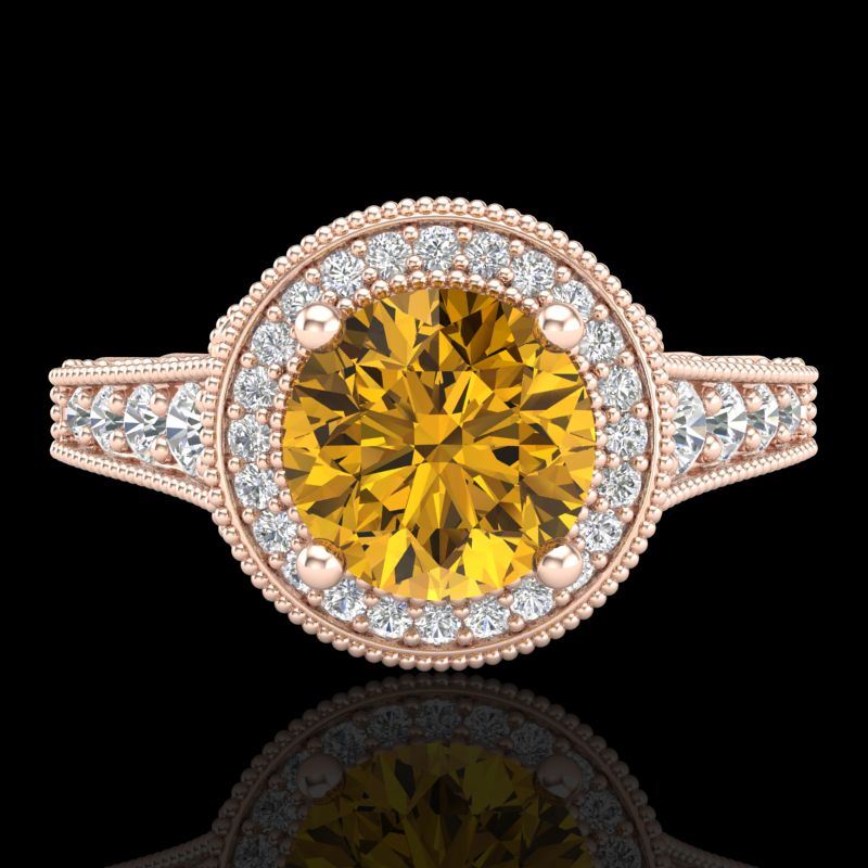 REF-263Y6K -37687 ---- 1.91 CTW Intense Fancy Yellow Diamond Engagement Art Deco Ring 18K Rose Gold ---- Luxury Designer Brand Ring Appraised at $15,950 Certificate Number US37687 18k Rose gold, Ring Size is 7, Ring measuring approx. Uniform, weighing in total approx. 8.5 grams. Made in the USA and is stamped 18k, Main stone 1.25 carat total weight containing 1 pieces of Intense Fancy Yellow color with SI quality Round shape cut Diamond , Stone #2 0.66 carat total weight containing 36 pieces of H-I color with VS/SI quality Round shape cut Diamond