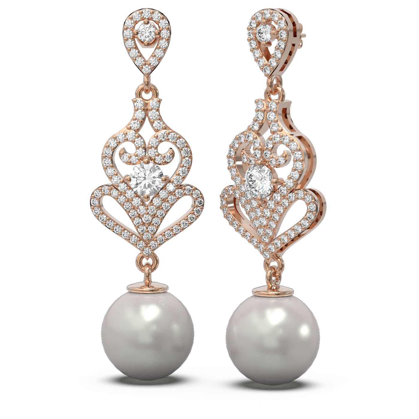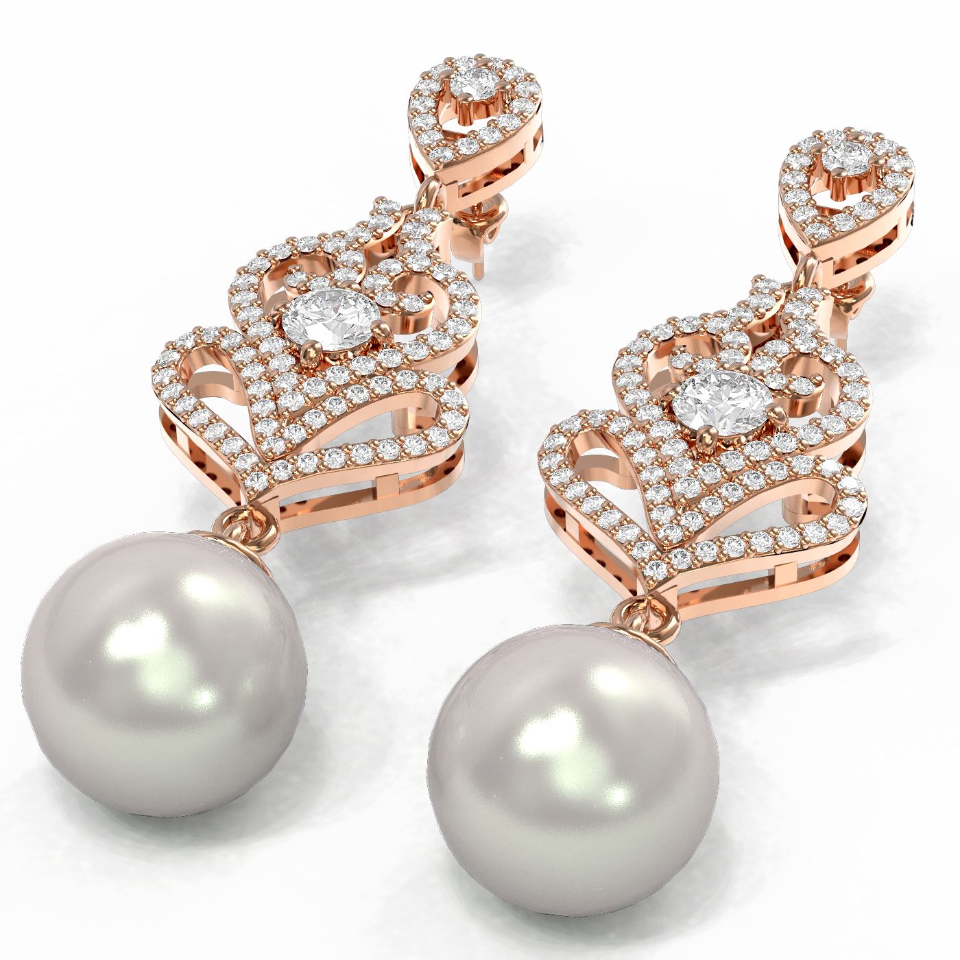 REF-230N2F - SKU: 61431 ---- 1.91 ctw Diamond & Pearl Earrings 18K Rose Gold