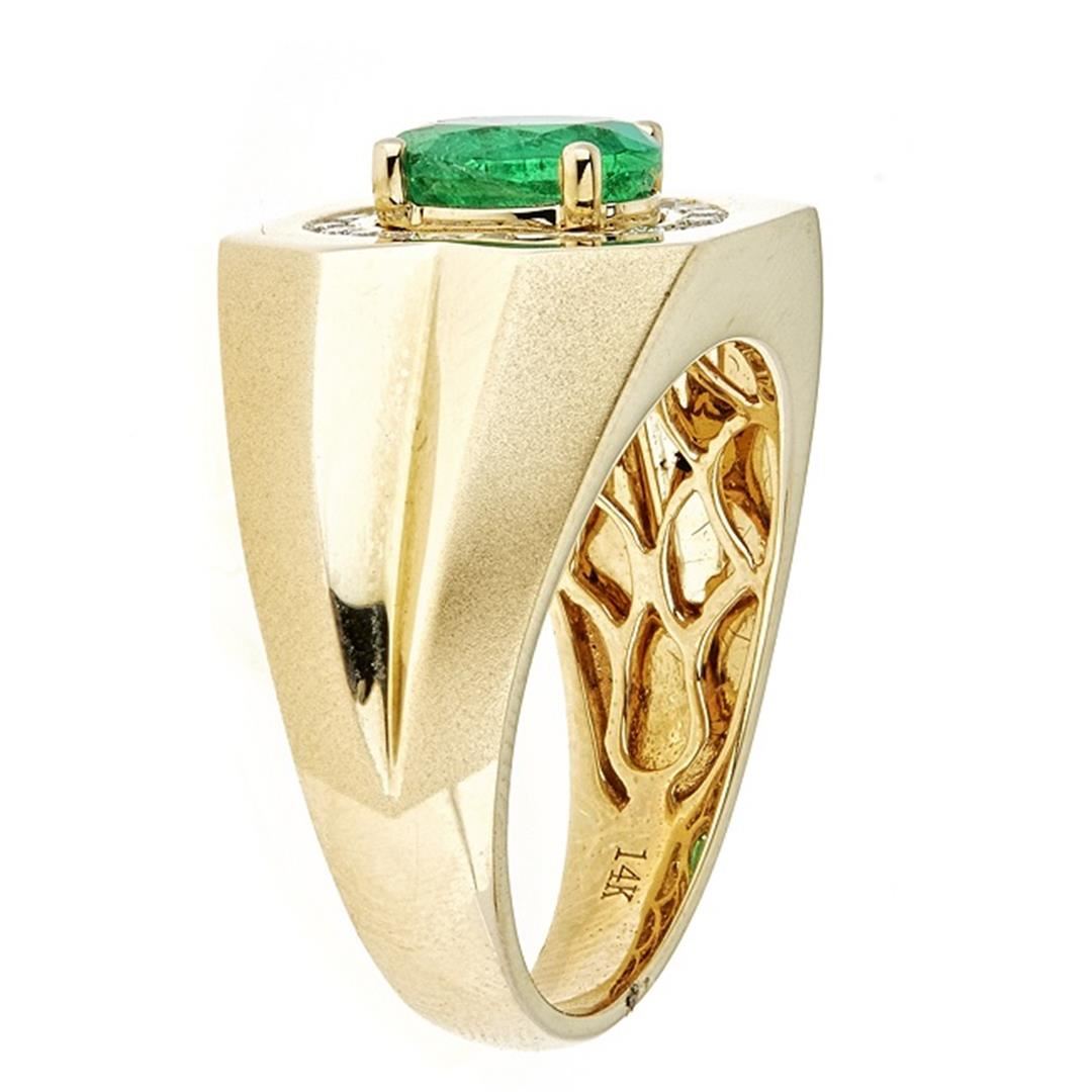 One Emerald and Diamond Ring featuring: 14KT Yellow Gold weighing a total of 11.40 grams, Emerald with a total weight of 1.91ct, and 22 Diamonds with a total weight of 0.30ctw.