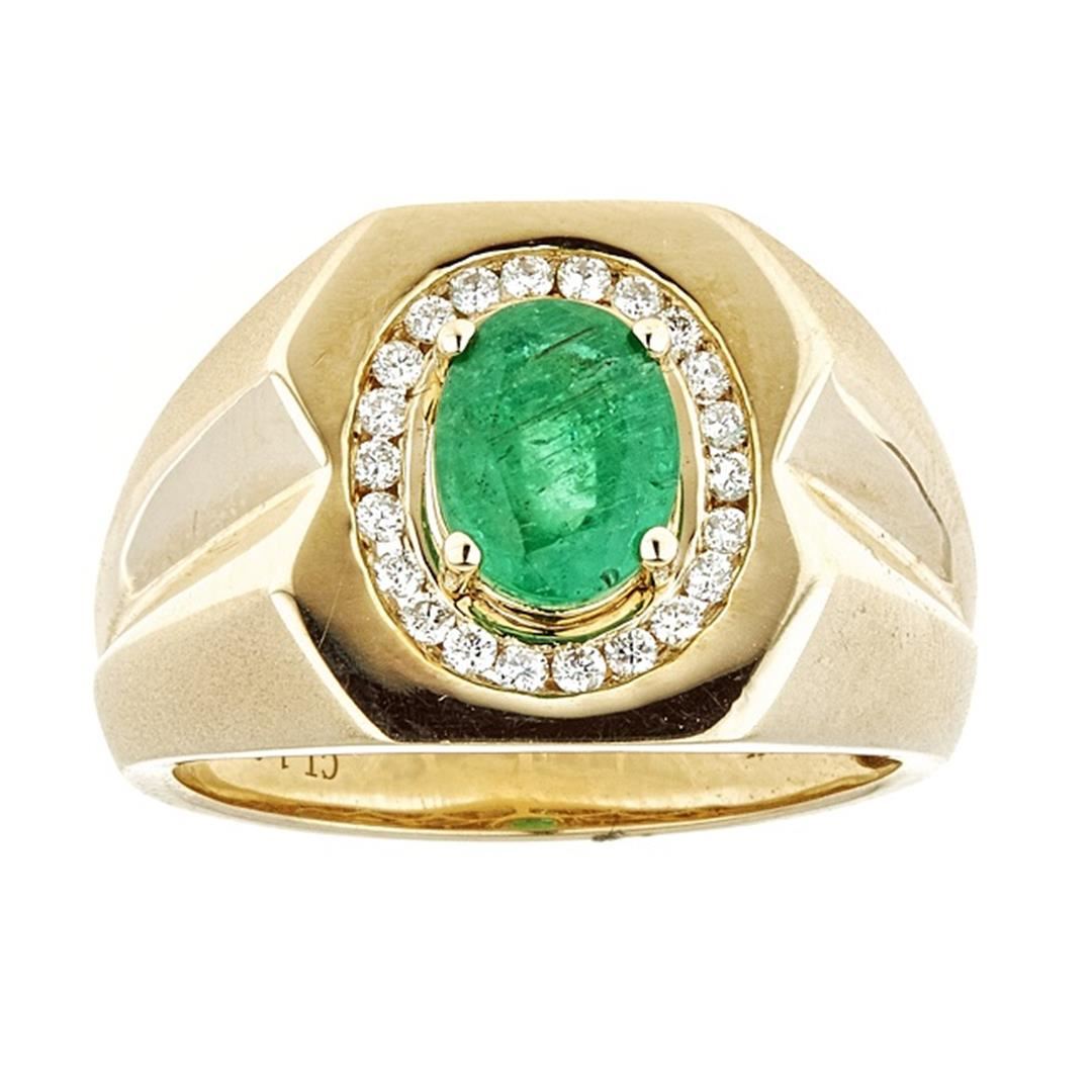 One Emerald and Diamond Ring featuring: 14KT Yellow Gold weighing a total of 11.40 grams, Emerald with a total weight of 1.91ct, and 22 Diamonds with a total weight of 0.30ctw.