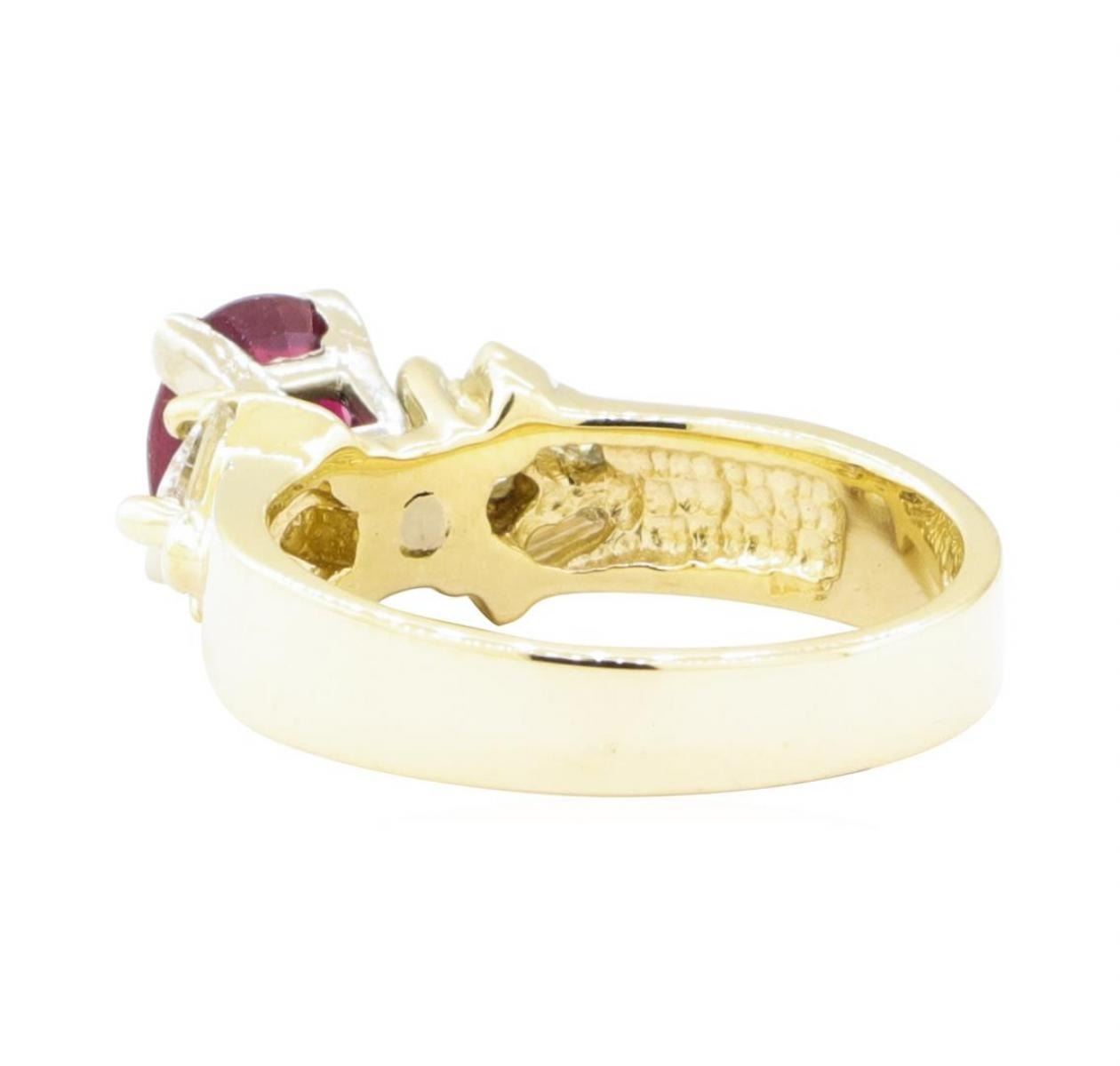 One ring featuring: 14KT yellow gold weighing 5.6 grams containing one glass-filled ruby weighing 1.41ctw and diamonds weighing 0.50 ctw.