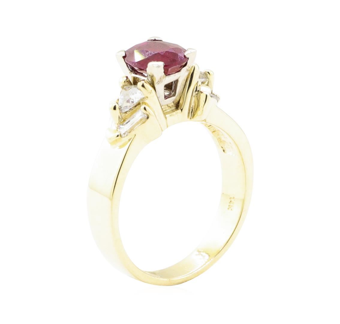 One ring featuring: 14KT yellow gold weighing 5.6 grams containing one glass-filled ruby weighing 1.41ctw and diamonds weighing 0.50 ctw.