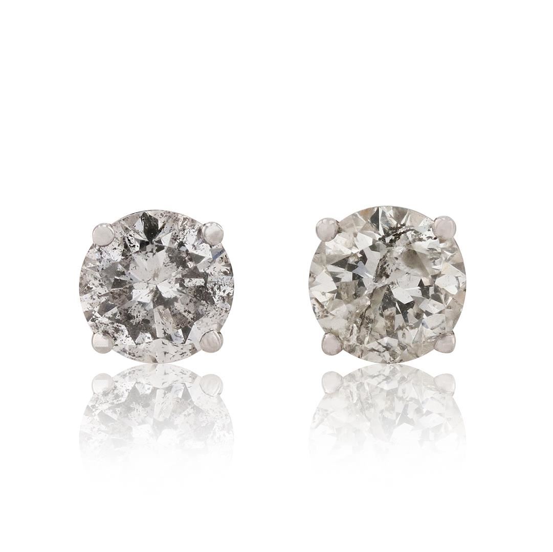 18K Gold Diamond Stud Earrings One polished, stamped, and tested pair of 18K white gold earrings mounted with 2 genuine round diamonds weighing approximately 1.92 carats. This item weighs 1.6 grams, condition is new, excellent workmanship. MAIN GEMSTONES Identity: Natural Diamond Shape: Round Cutting Style: Brilliant Cut Quantity: 2 Diamonds Average Diameter: 6.1 mm 6.0 mm Total Weight: 1.92 carats Color Grade: H Clarity Grade: I-2 Polish: Very Good Symmetry: Very Good Refractive Index: 2.417 Specific Gravity: 3.52 +1-0.01 Hardness: 10 TOTAL DIAMOND WEIGHT: 1.92 cts WEIGHT OF ITEM: 1.6 grams GOLD CONTENT: 18K White Gold
