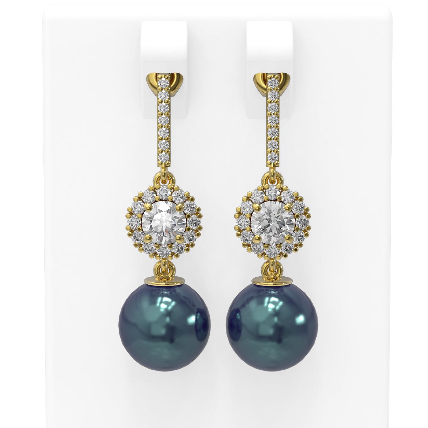 REF-297G3W - SKU: 55432 ---- 1.92 ctw Diamond & Pearl Earrings 18K Yellow Gold