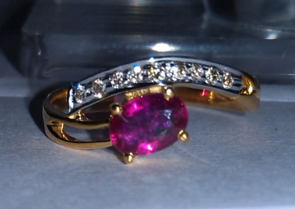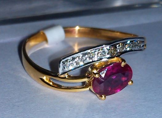 1.92g Ring made of 14kt Gold , 0.085 Ct Diamond and 0.61 Ct Ruby