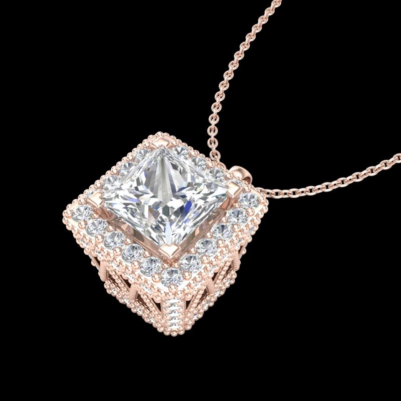 REF-436H4A -37173 ---- 1.93 CTW Princess VS/SI Diamond Solitaire Micro Pave Necklace 18K Rose Gold ---- Luxury Designer Brand NECKLACE Appraised at $21,600 Certificate Number US37173 18k Rose gold, NECKLACE Size is 16 Inches, NECKLACE measuring approx. Uniform, weighing in total approx. 6.8 grams. Made in the USA and is stamped 18k, Main stone 1.04 carat total weight containing 1 pieces of H-J color with VS/SI quality Princess shape cut Diamond , Stone #2 0.89 carat total weight containing 76 pieces of H-I color with VS/SI quality Round shape cut Diamond