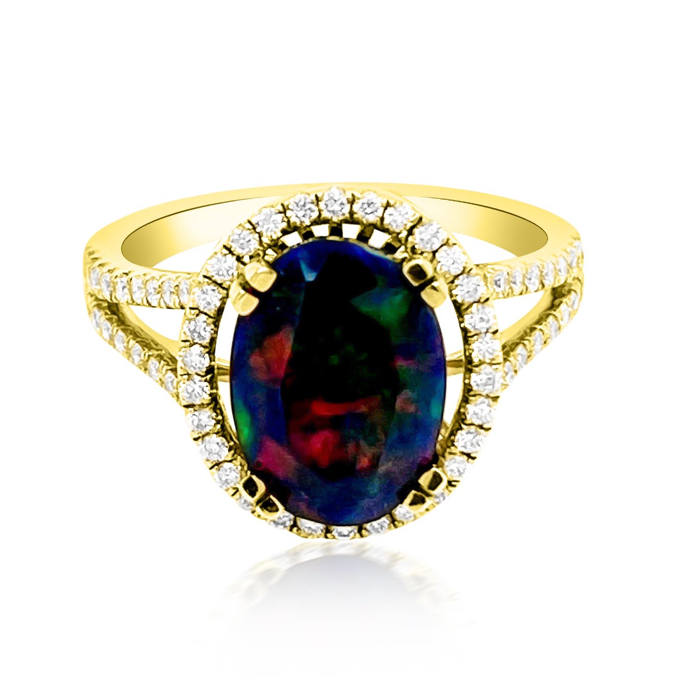 1.93ct Natural Opal 14K Yellow Gold 3.66gm Diamond 0.46ct Ring #PJ6020