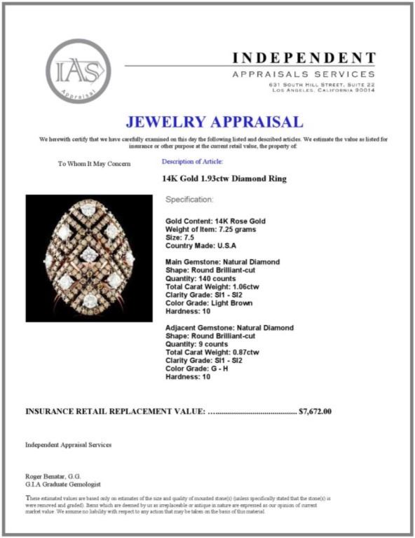 Regarding Appraised Jewelry and Loose Stones - Auctionfarm sends them out to a third party for Retail Replacement Value Appraisals, which are the most common. These types of evaluations are written for insurance needs. This would be the cost to replace the jewelry with an item of equal quality and kind, considered to be the current market price or the replacement value. This type of appraisal is done to protect you in the event of damage or loss of a valuable item. Our appraisals are conducted by independent 3rd Party appraisal firms that utilizes Certified GIA Gemologist. Appraisals should be used for verification of gemstone and/or metal weight, size, and grade only, not actual value. Appraisal value should be considered for insurance purposes only, not actual value, as price varies greatly from retail locations thru out the world. Items should not be purchased with the expectation to resell for appraisal price, or for profit.