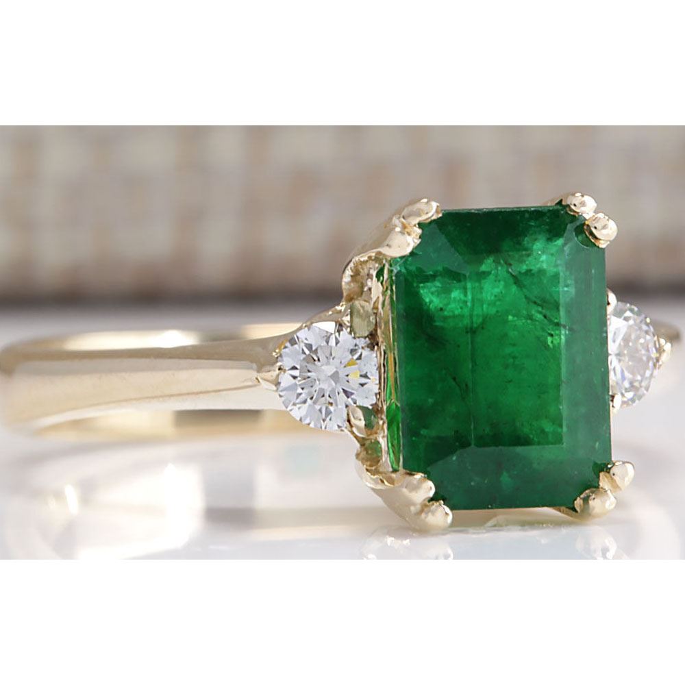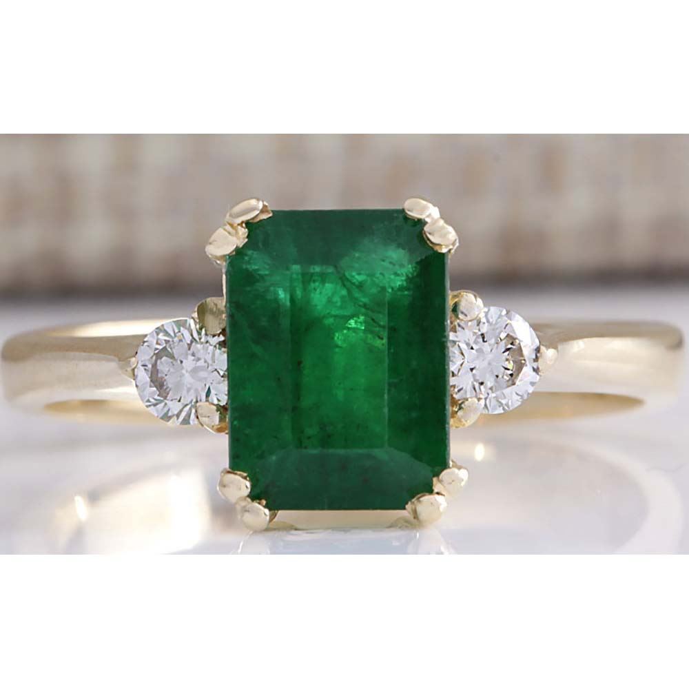 1.94 CTW Natural Emerald And Diamond Ring 18K Solid Yellow Gold
