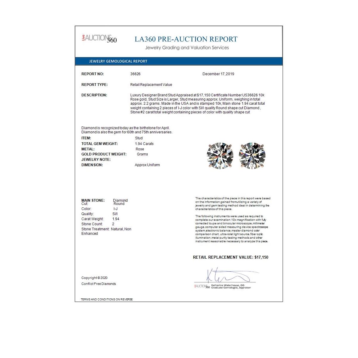 REF-256M3G - SKU: 36626 ---- 1.94 ctw Certified Quality Diamond Stud Earrings 10k Rose Gold