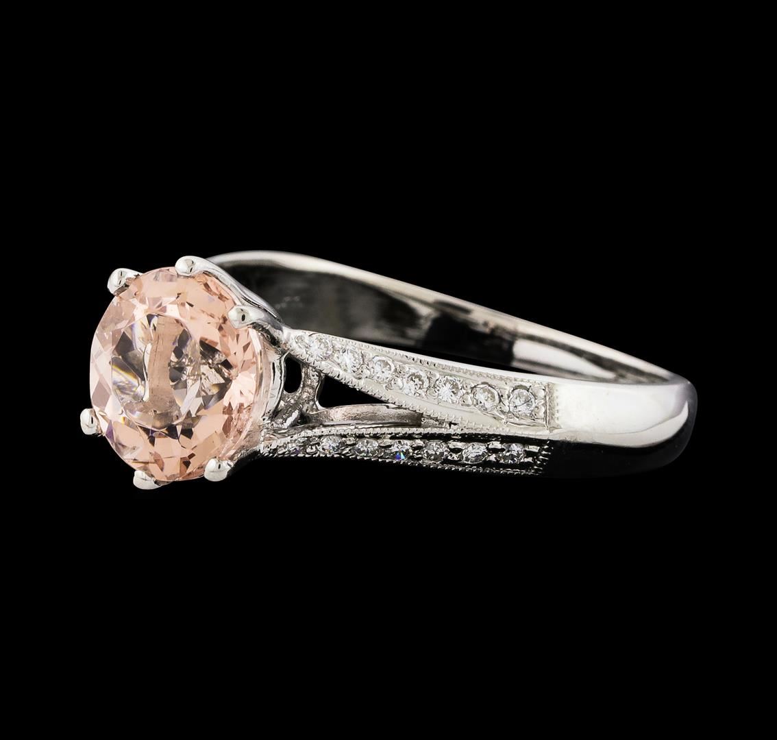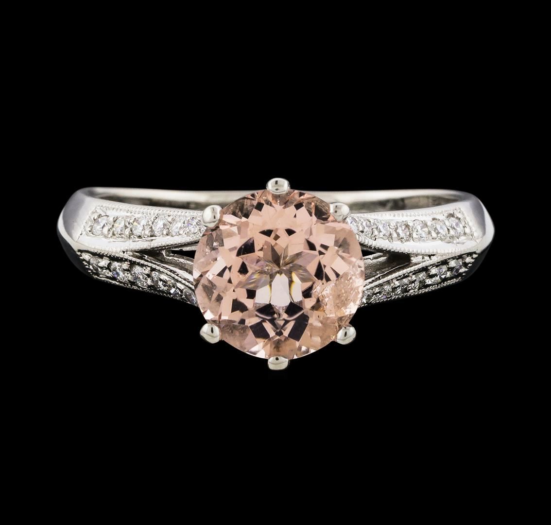 One Morganite and Diamond Ring featuring: 18KT White Gold with a total weight of 4.00 grams, Morganite with a total weight of 1.94ct, and side diamonds with a total weight of 0.30ctw.