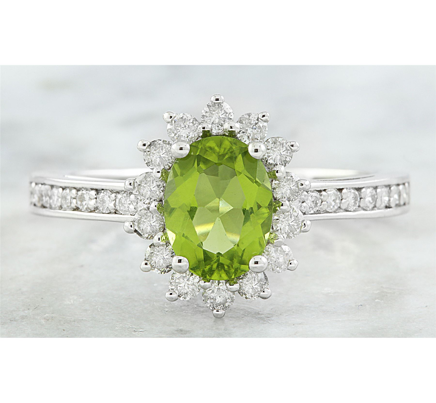 1.95 CTW Peridot 14K White Gold Diamond Ring