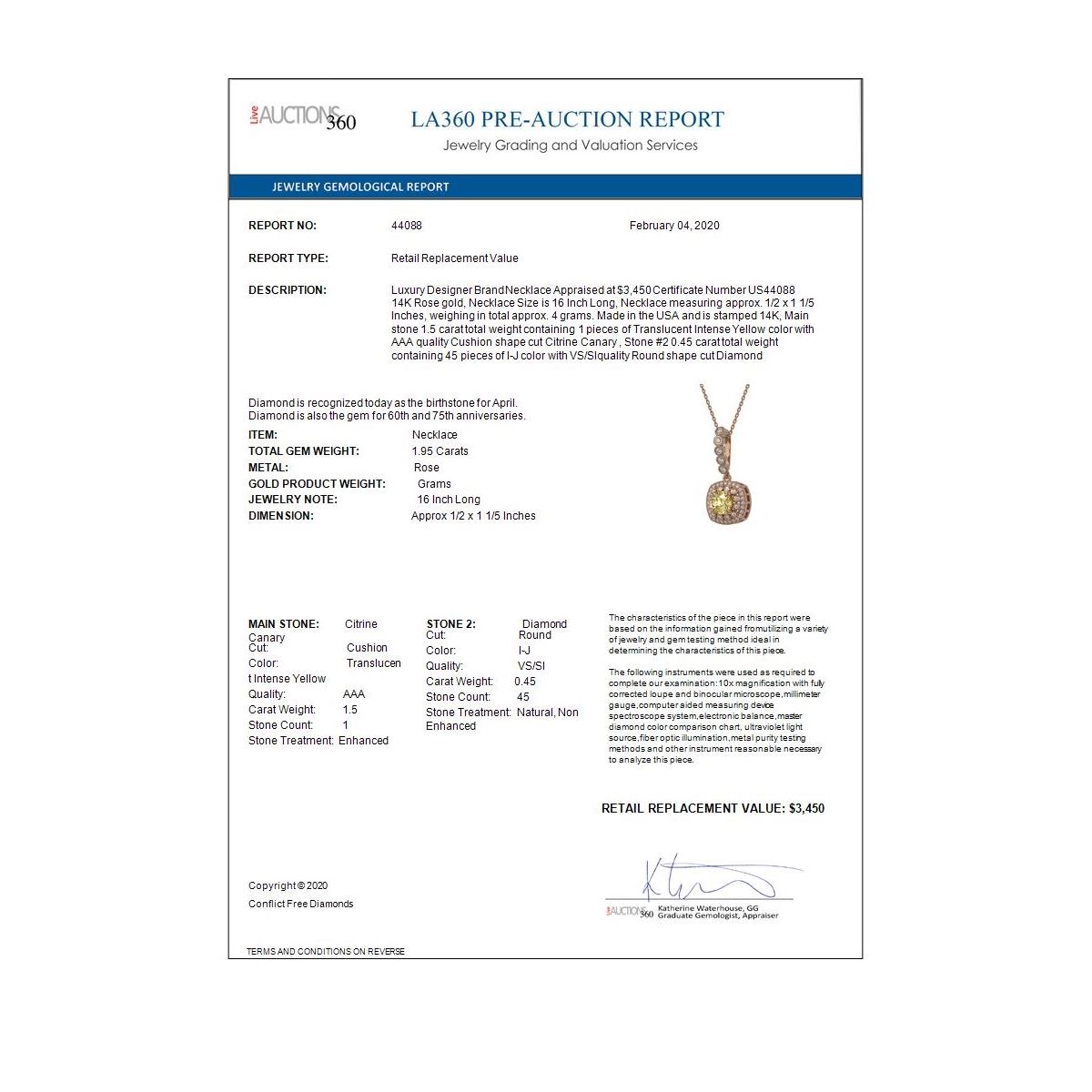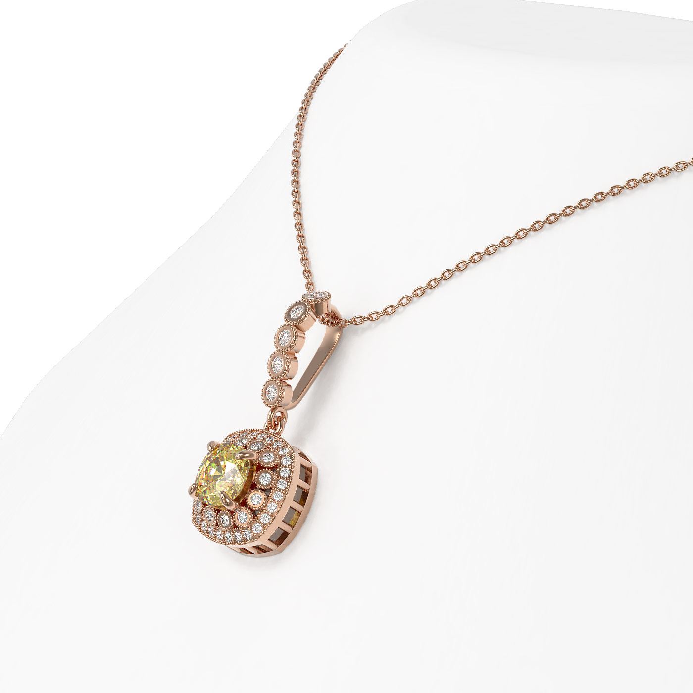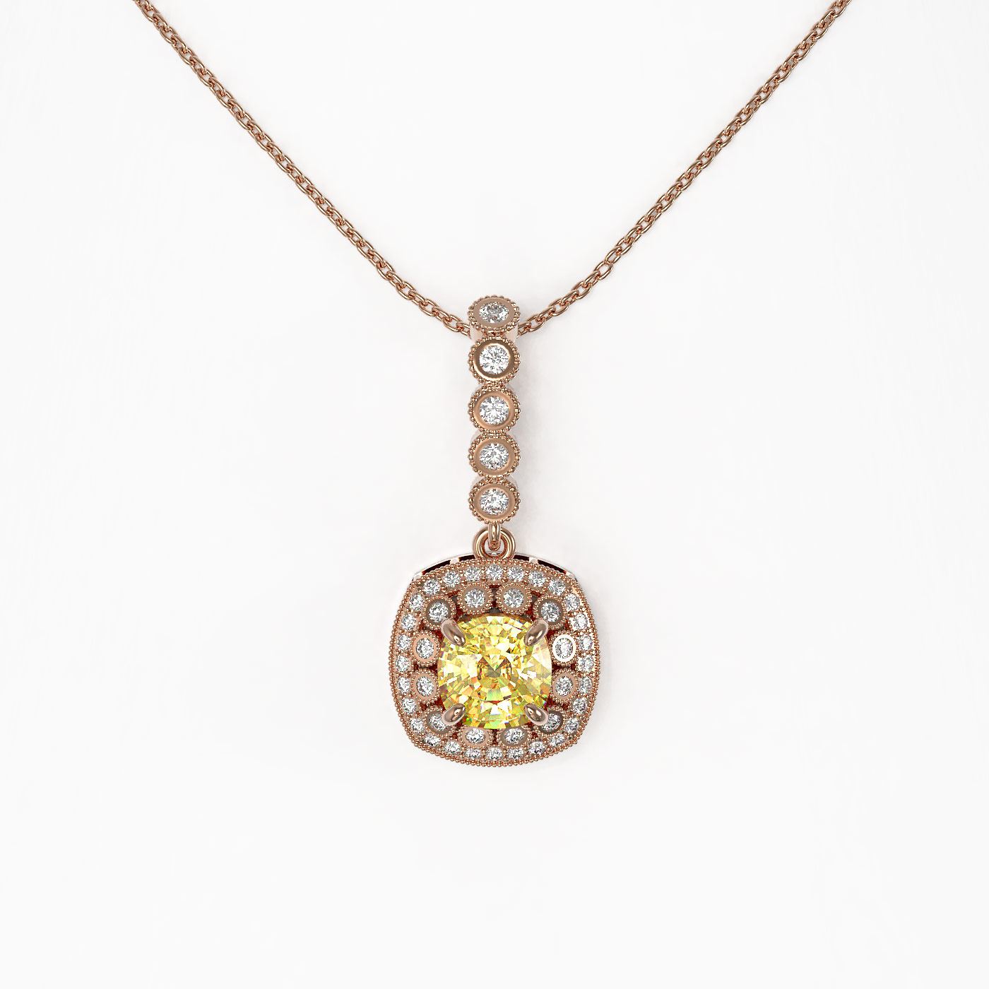 REF-69N6F - SKU: 44088 ---- 1.95 ctw Canary Citrine & Diamond Victorian Necklace 14K Rose Gold