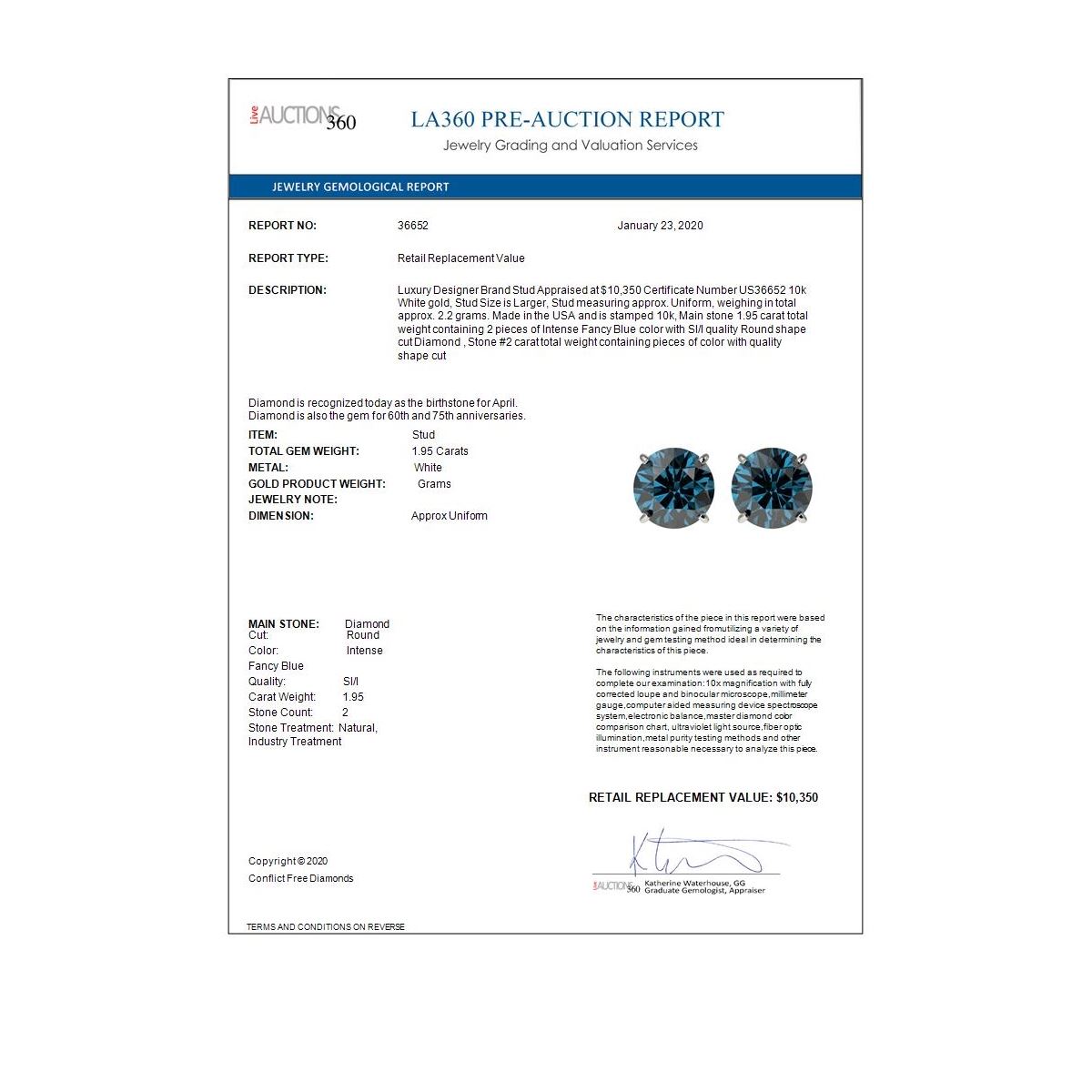 REF-181F6M - SKU: 36652 ---- 1.95 ctw Certified Intense Blue Diamond Stud Earrings 10k White Gold