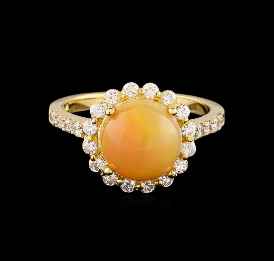 One ring featuring: 14KT Yellow Gold weighing 3.35 grams containing one Opal center stone with a total weight of 1.95ct and diamonds with a total weight of 0.49ct.