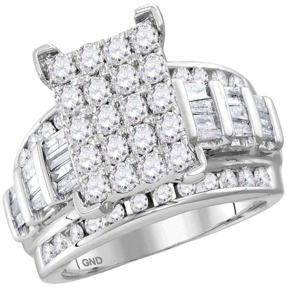 REF-139W5K- SKU: GD116384 ---- 1.96 CTW Diamond Cluster Bridal Engagement Ring 10KT White Gold