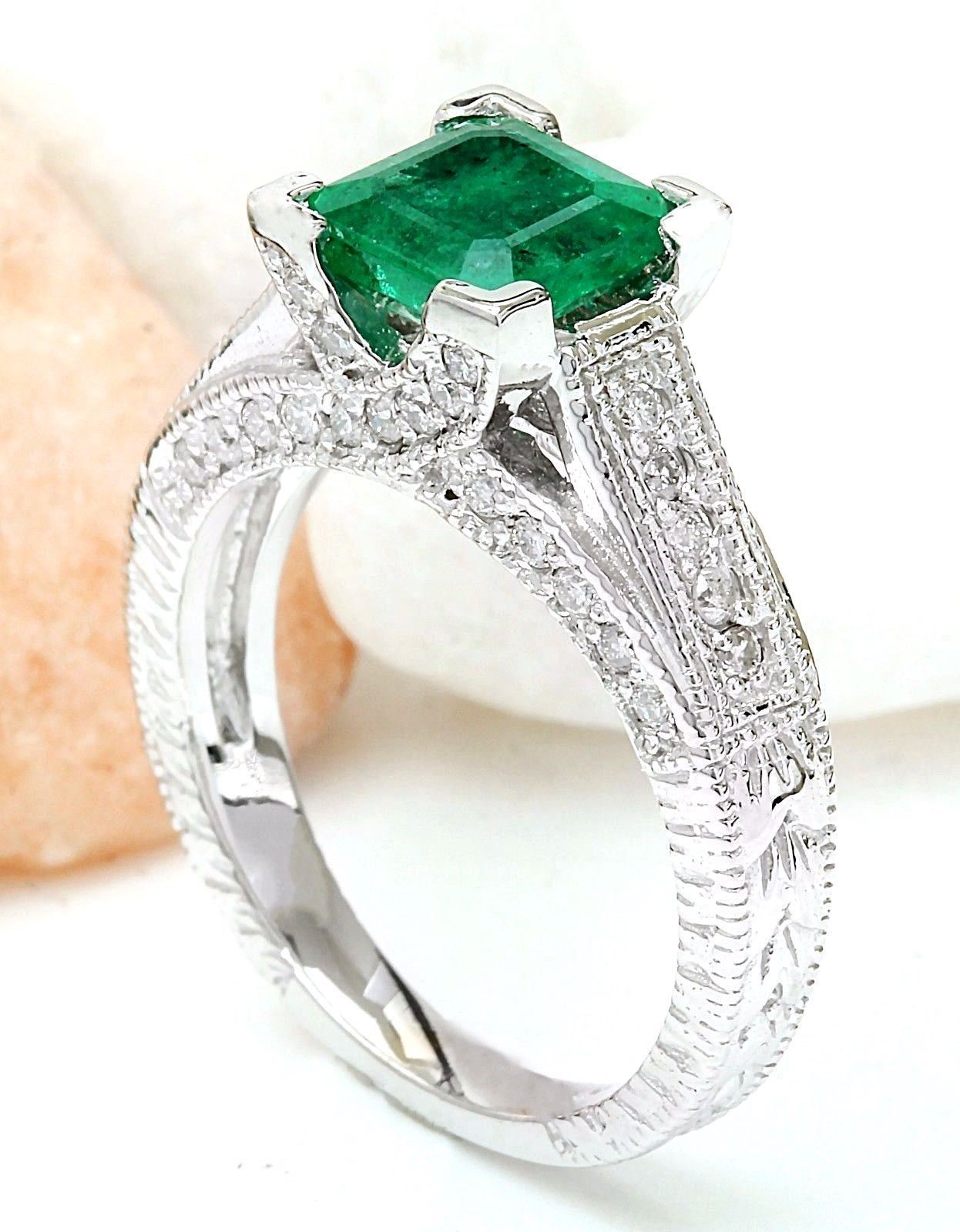 1.96 Carat Natural Emerald 14K Solid White Gold Diamond Ring