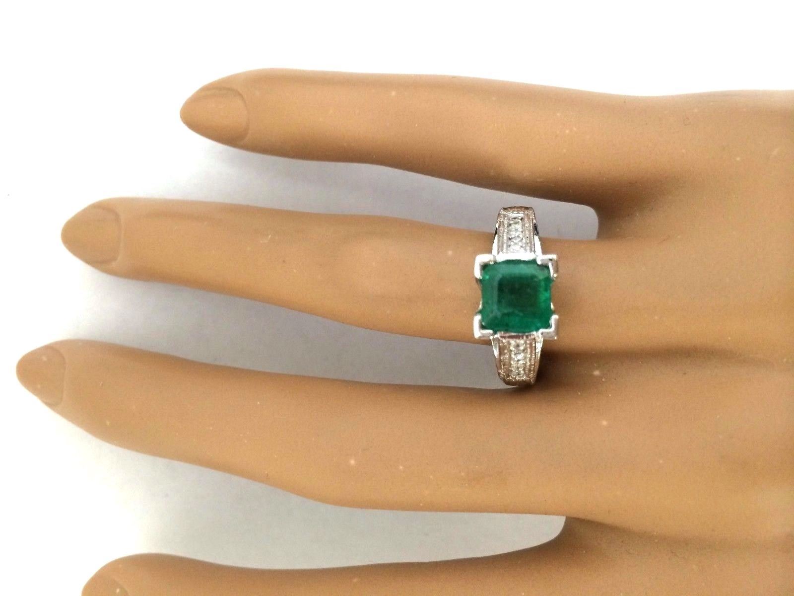 1.96 CTW Natural Emerald 14K Solid White Gold Diamond Ring