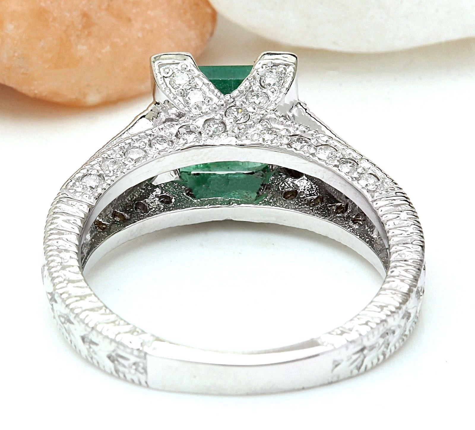 1.96 Carat Natural Emerald 14K Solid White Gold Diamond Ring