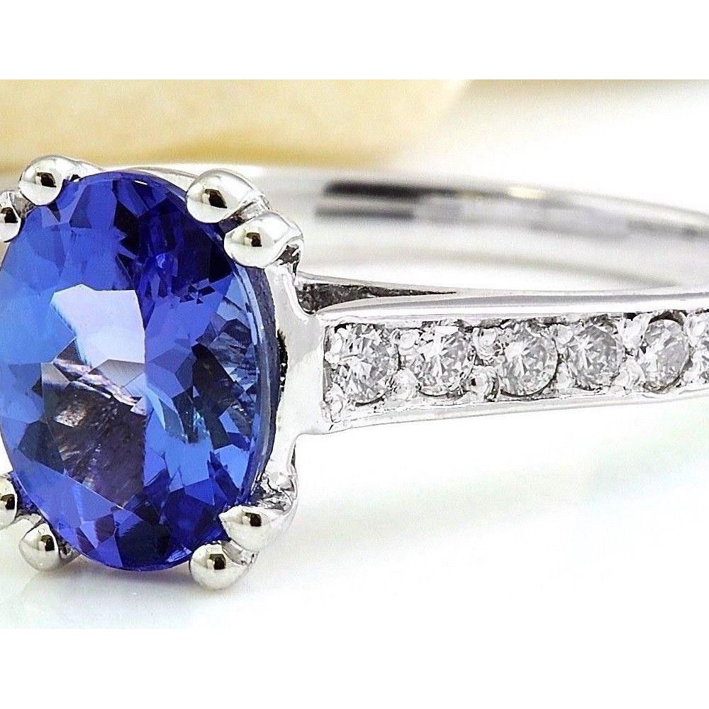 1.96 Carat Natural Tanzanite 14K Solid White Gold Diamond Ring