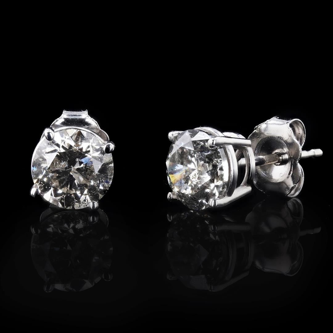 1.96ctw Diamond Stud Earrings. Please see Photos and Description for all available information. These gorgeous stud earrings are a perfect gift for someone special. A pair of 1.96ctw round brilliant cut diamonds is placed in a prong setting and secured in a 14K white gold earring setting. These earrings are a great way to show your love, friendship, and appreciation.