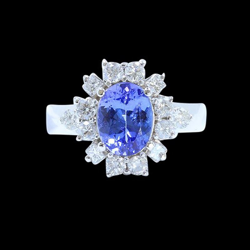 14K WHITE GOLD NATURAL TANZANITE RING:5GRAMS/DIAMOND:0.32CT/TANZANITE:1.97CT/#GVR1101