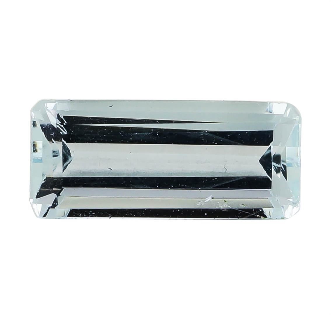 One natural emerald cut aquamarine with an exact weight of 1.98ct., clarity is eye clean, slightly grayish greenish blue. Gemological Appraisals Services estimates the retail value at $792 GAS Appraised.