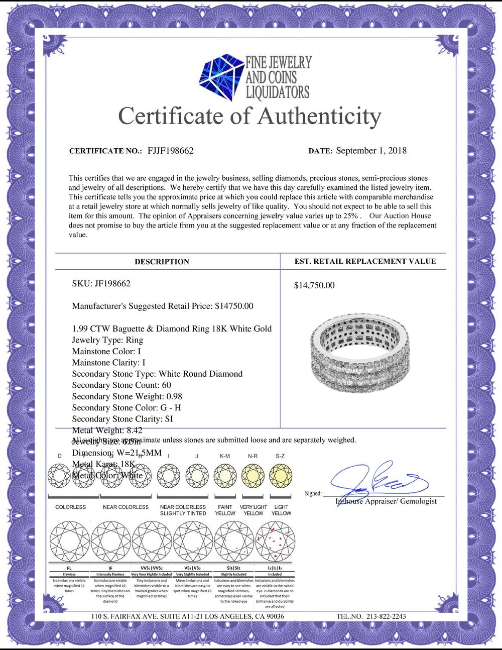 REF-194Y2X - JF198662 ---- 1.99 CTW Baguette & White Round Diamond Ring 18K White Gold