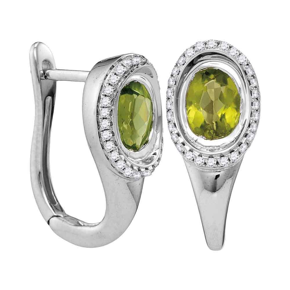 REF-87W2K- SKU: GD105031 ---- 1.99 CTW Oval Natural Peridot Diamond Hoop Earrings 14KT White Gold