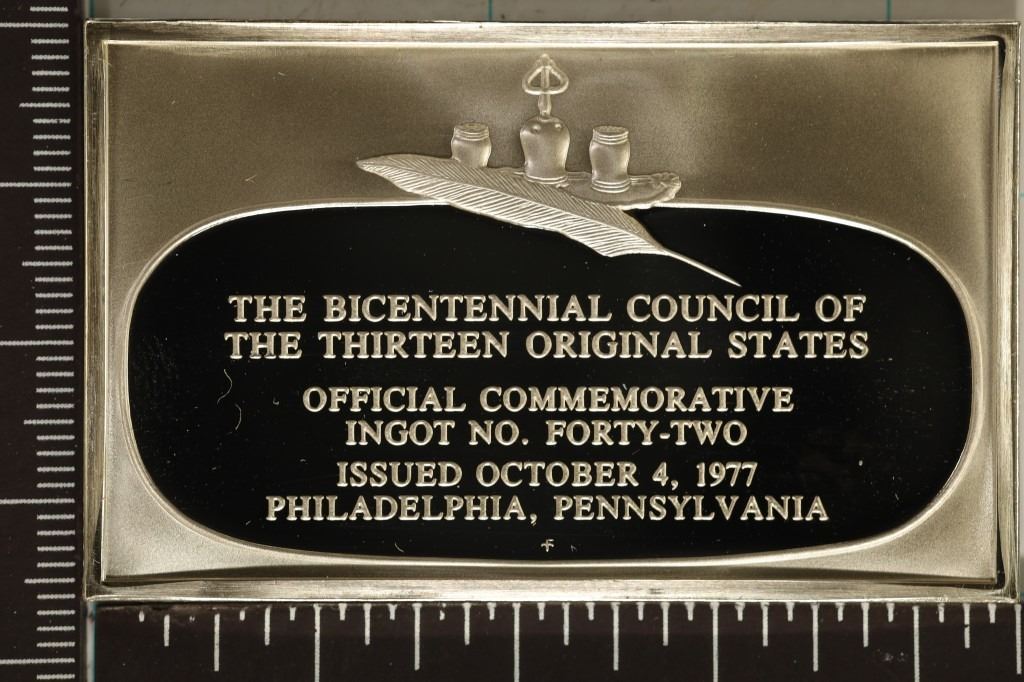 COUCIL OF THE 13 ORIGINAL STATES, INGOT #42 ISSUED OCTOBER 4TH, 1977, PHILADELPHIA, PENNSYLVANIA, EDGE MARKED