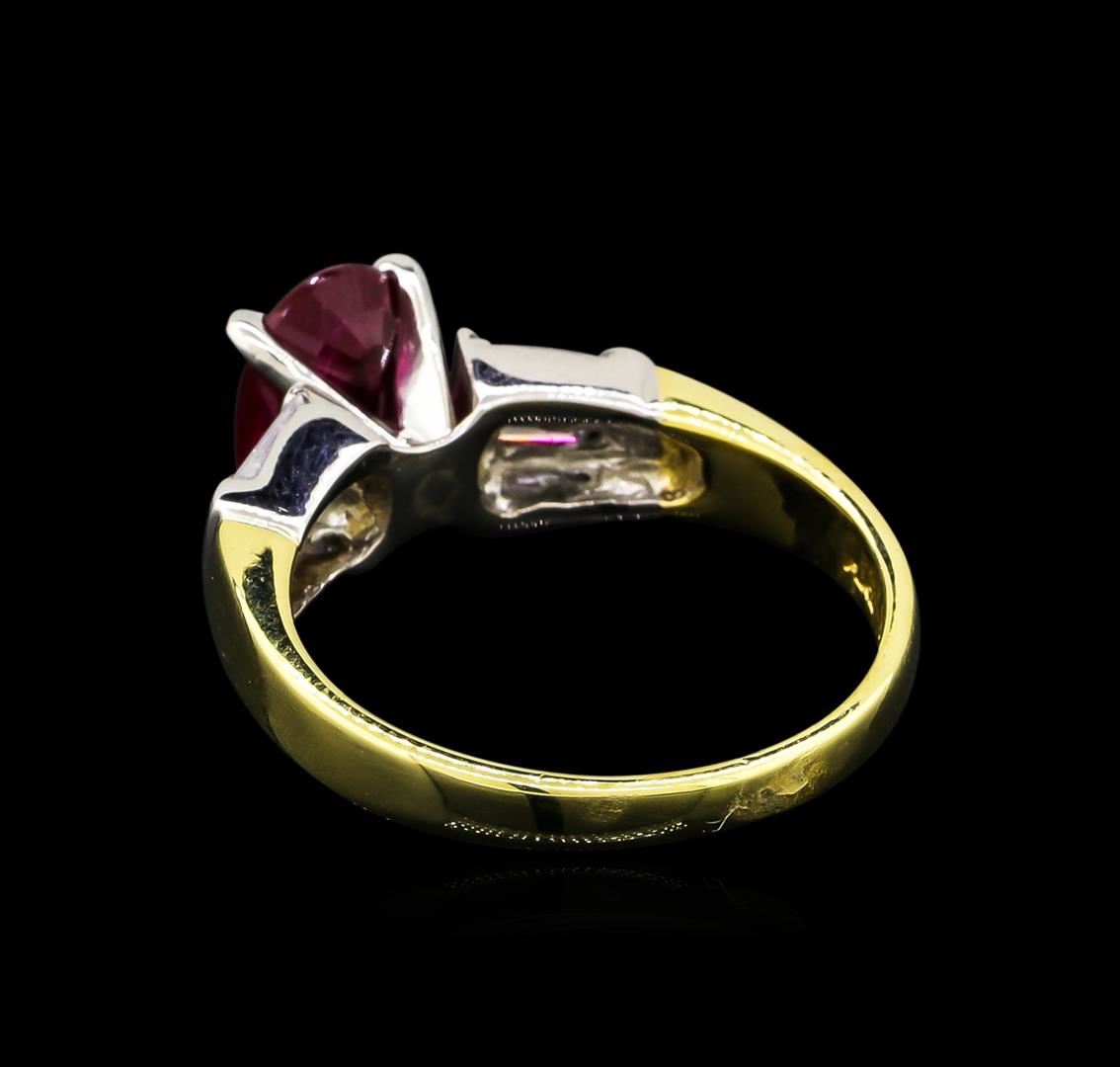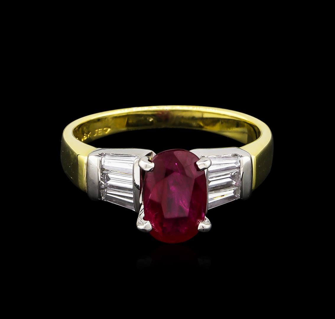 One ring featuring: 18KT yellow gold and platinum weighing 6.05 grams containing one ruby with a total weight of 1.99ct and side diamonds with a total weight of 0.60ct.