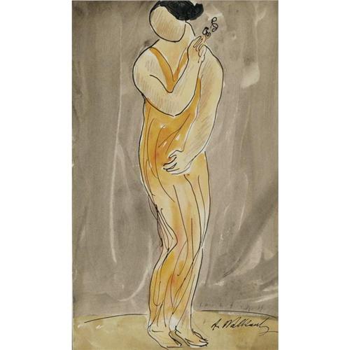 1 ABRAHAM WALKOWITZ Isadore Duncan 14"x 8" watercolor signed lower right framed PACKING AND SHIPPING must be handled by 3rd party shipper. CONDITION REPORT: two small tears on left edge extending 1/4" into image, otherwise excellent.