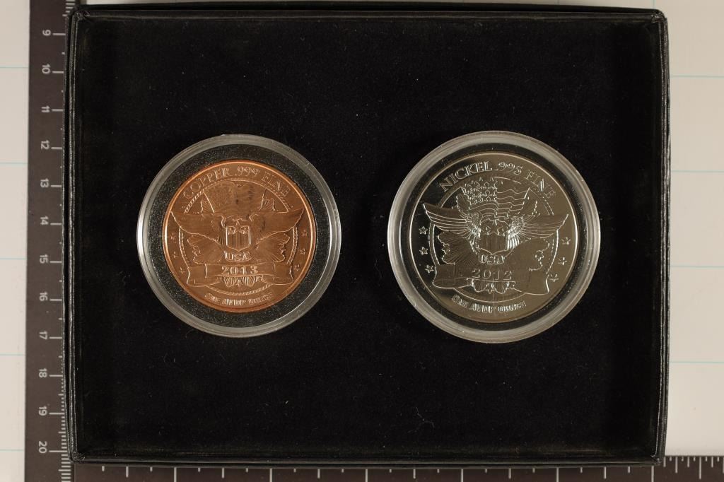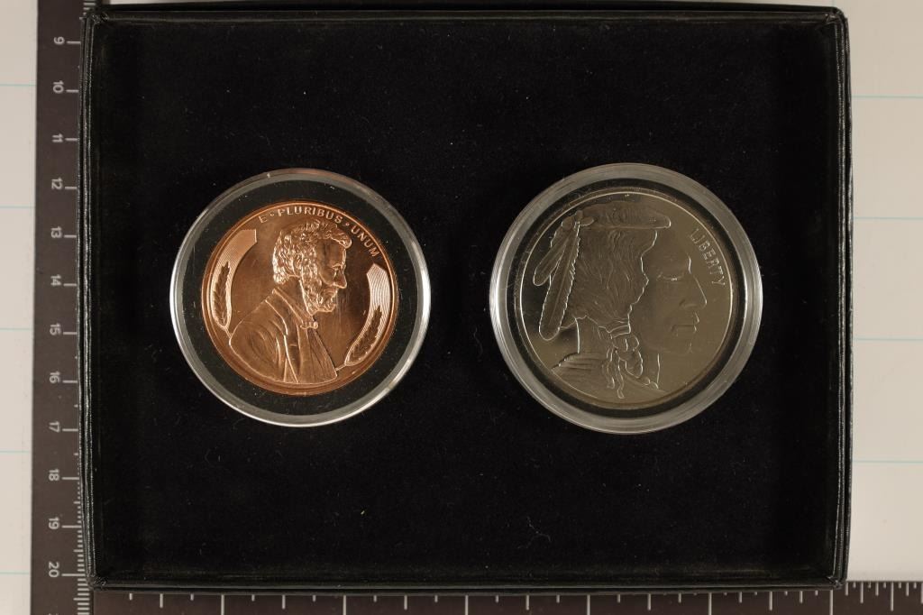 FEATURING A PROOF ABRAHAM LINCOLN .999 FINE  COPPER ROUND AND INDIAN HEAD PF .995 FINE  NICKEL, IN ORIGINAL US MINT PACKAGING BY THE  LITTLETON COIN COMPANY