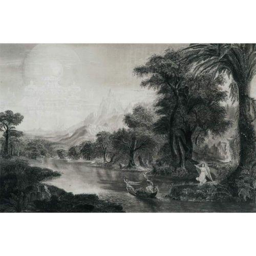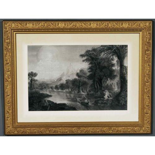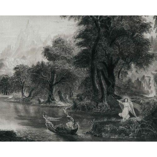 1 AMERICAN SCHOOL CHARCOAL<BR>LANDSCAPE<BR>15"x 23"<BR>with mystical scene<BR>signed indistinctly dated 1854<BR>CONDITION REPORT: excellent