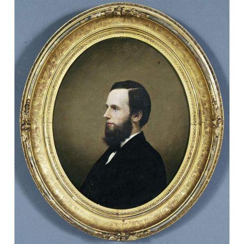 1 AMERICAN SCHOOL<BR>Portrait of a Gentleman<BR>16"x13" oil on canvas, oval<BR>unsigned, circa 1860 <BR>CONDITION REPORT: excellent.<BR>PACKING AND SHIPPING - see recommended.