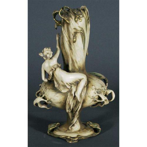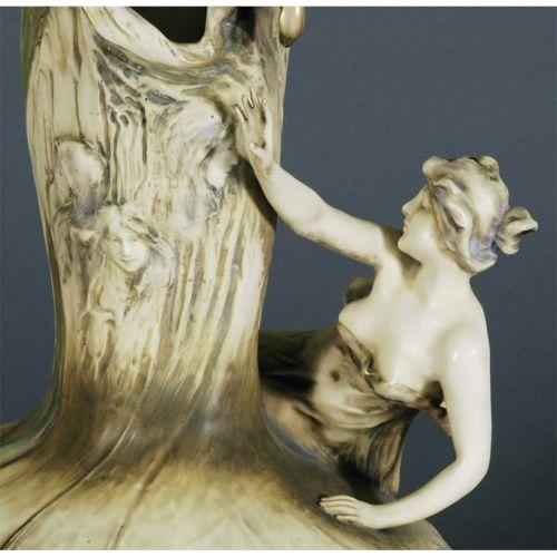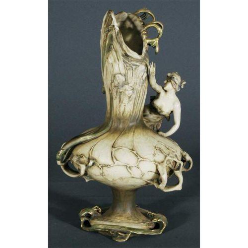 1 AMPHORA ART NOUVEAU VASE<BR>22 3/4" high<BR>impressed on underside,<BR>"AMPHORA/746/1"<BR>circa 1900 <BR>CONDITION REPORT: drilled for lamp, old break to tenacle at rim with touch-up<BR>PACKING AND SHIPPING - see recommended shippers.