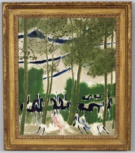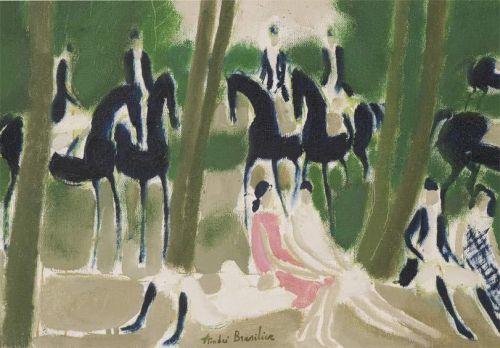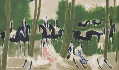 1 ANDRE BRASILIER, 26"x21" oil on canvas, At The Polo Match, titled verso in French, "Fete Hippique a Fere en Tardenois/ A.B. 1968" CONDITION: excellent, no damage or restoration found,